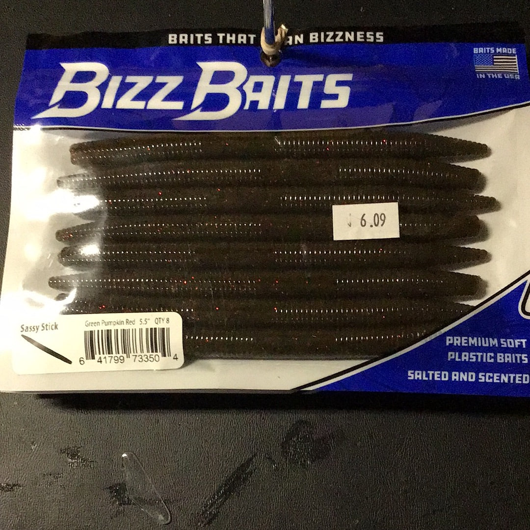 Bizz Baits Sassy Stick 5.5_ GreenPumpkin Red