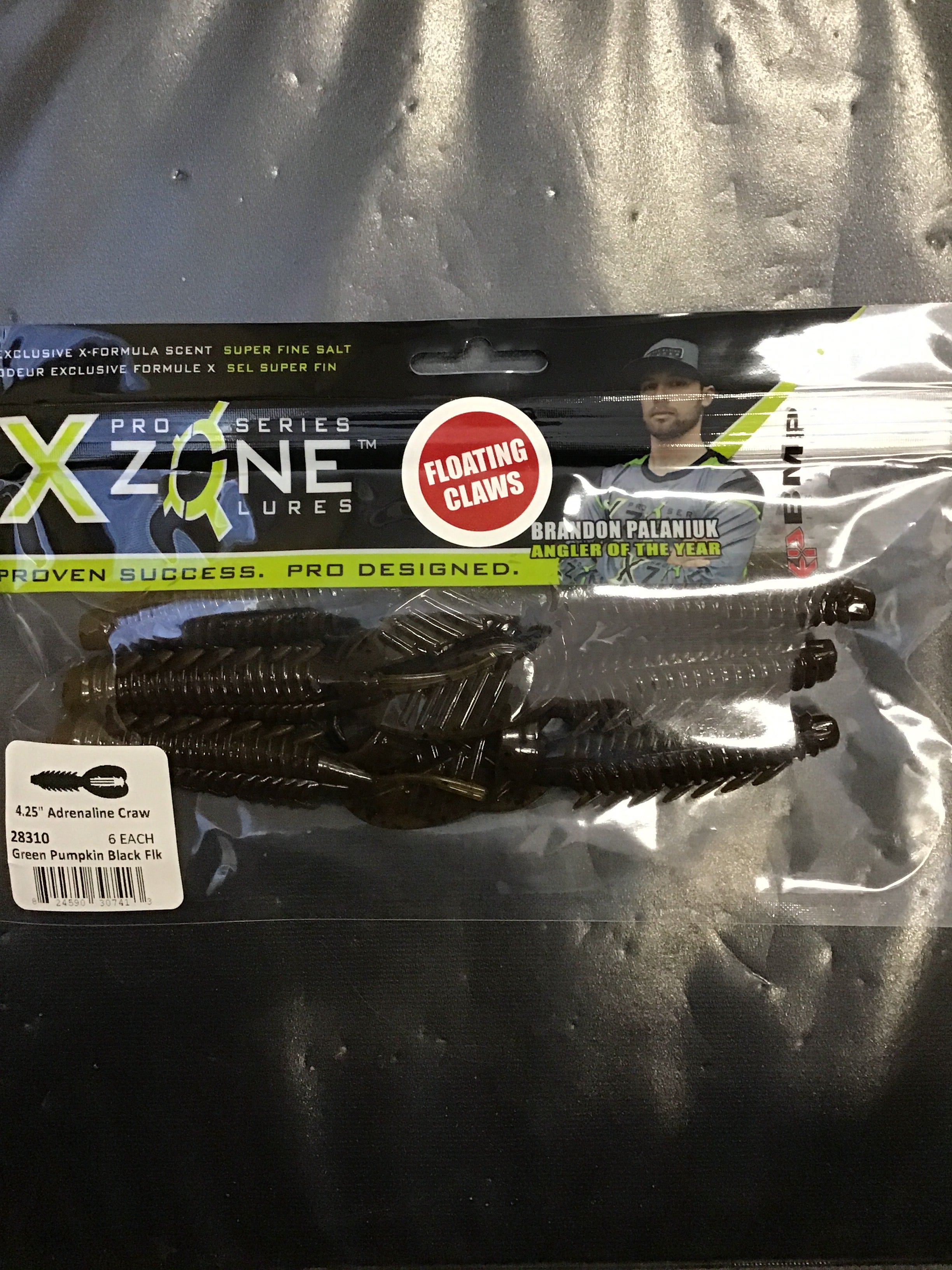 X Zone 4.25” Adrenaline Craw_ Green Pumpkin Blk Flk