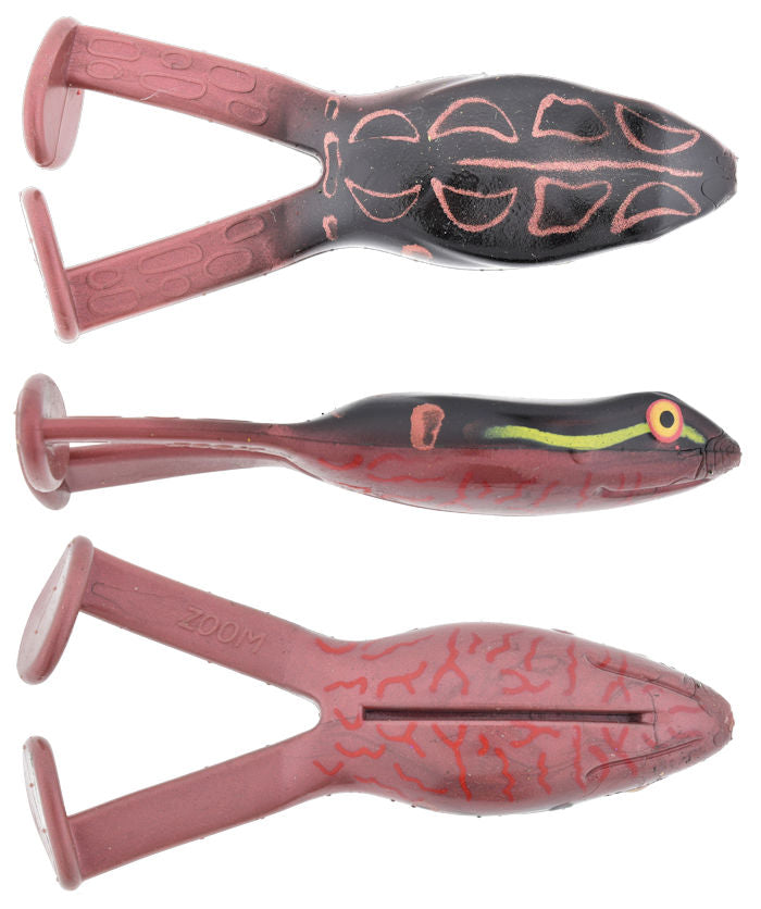 The Zoom Frog is a new twist on the classic toad. Unlike the Toad the Frog features boot tail legs to give you a new sound. The sleek body design in addition with the deep hook slot makes this Frog great through heavy cover. The hook slot will also help give you the best hook set possible. The Zoom Frog is made from a soft, durable material that doesn't cut down on the action but increases the durability.