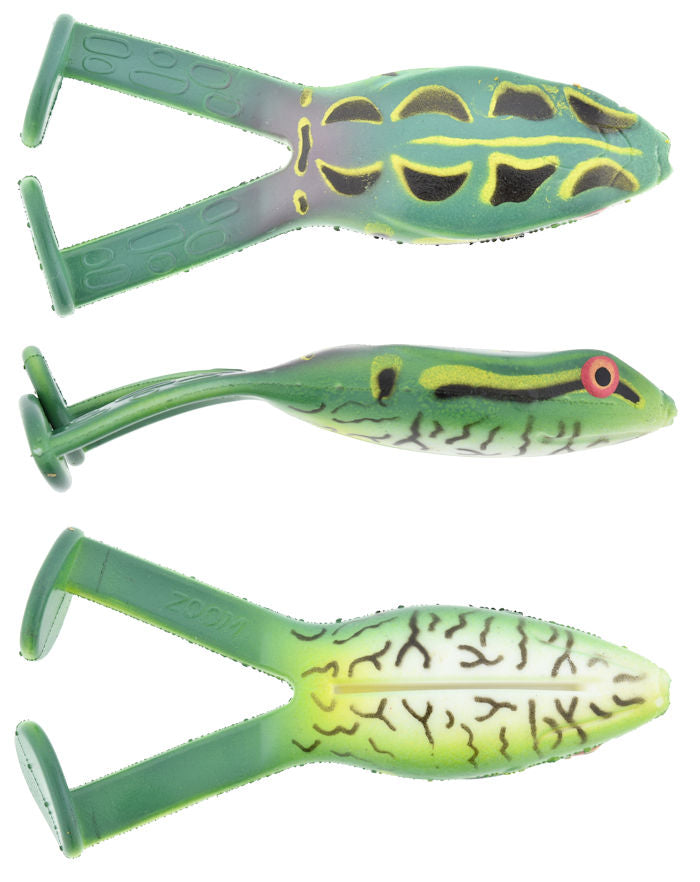 The Zoom Frog is a new twist on the classic toad. Unlike the Toad the Frog features boot tail legs to give you a new sound. The sleek body design in addition with the deep hook slot makes this Frog great through heavy cover. The hook slot will also help give you the best hook set possible. The Zoom Frog is made from a soft, durable material that doesn't cut down on the action but increases the durability.