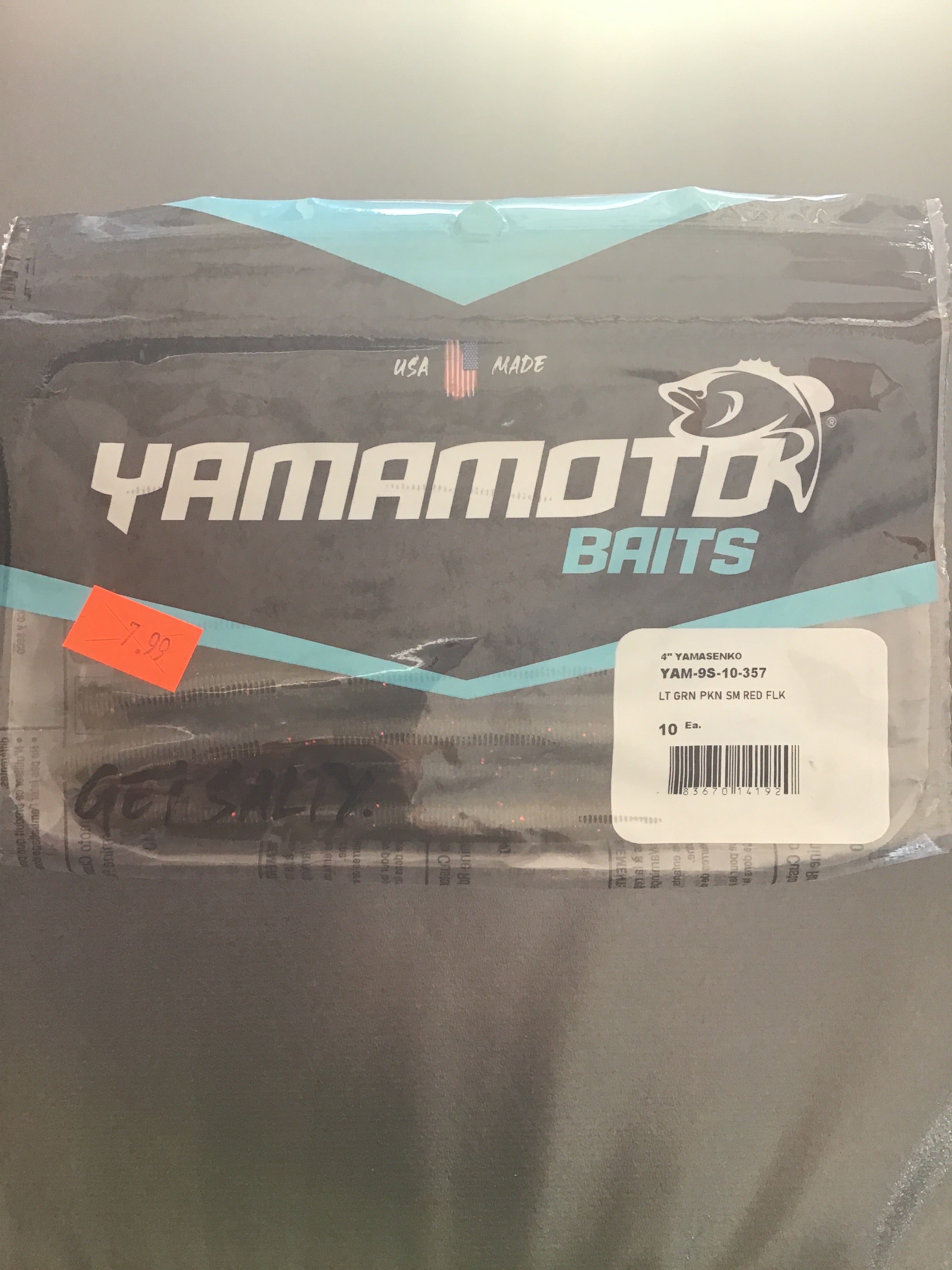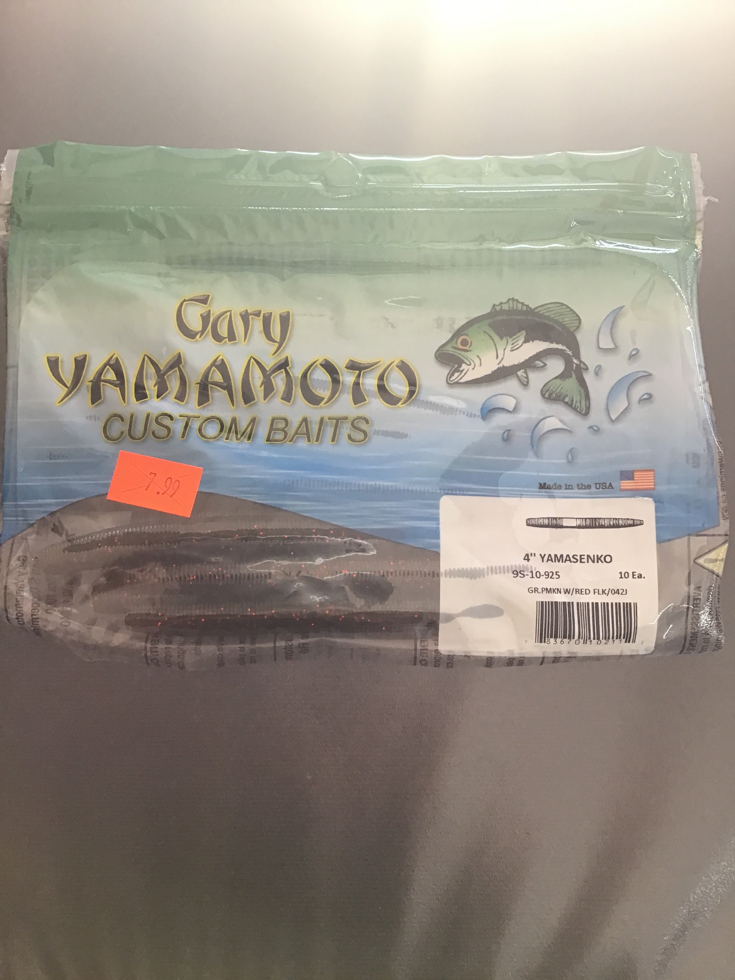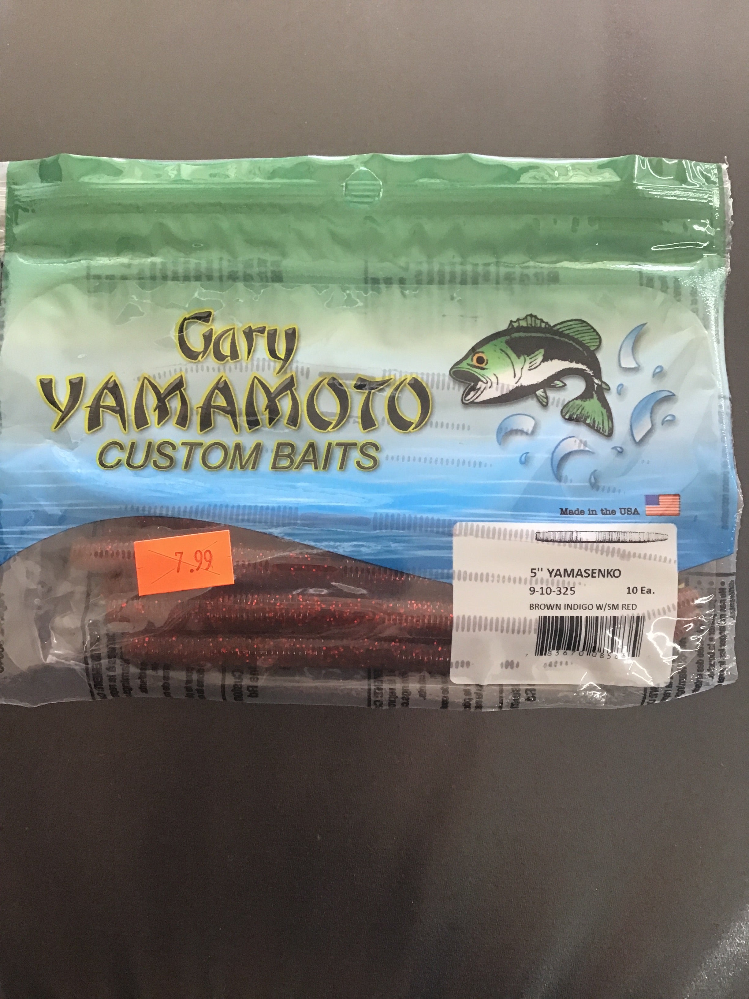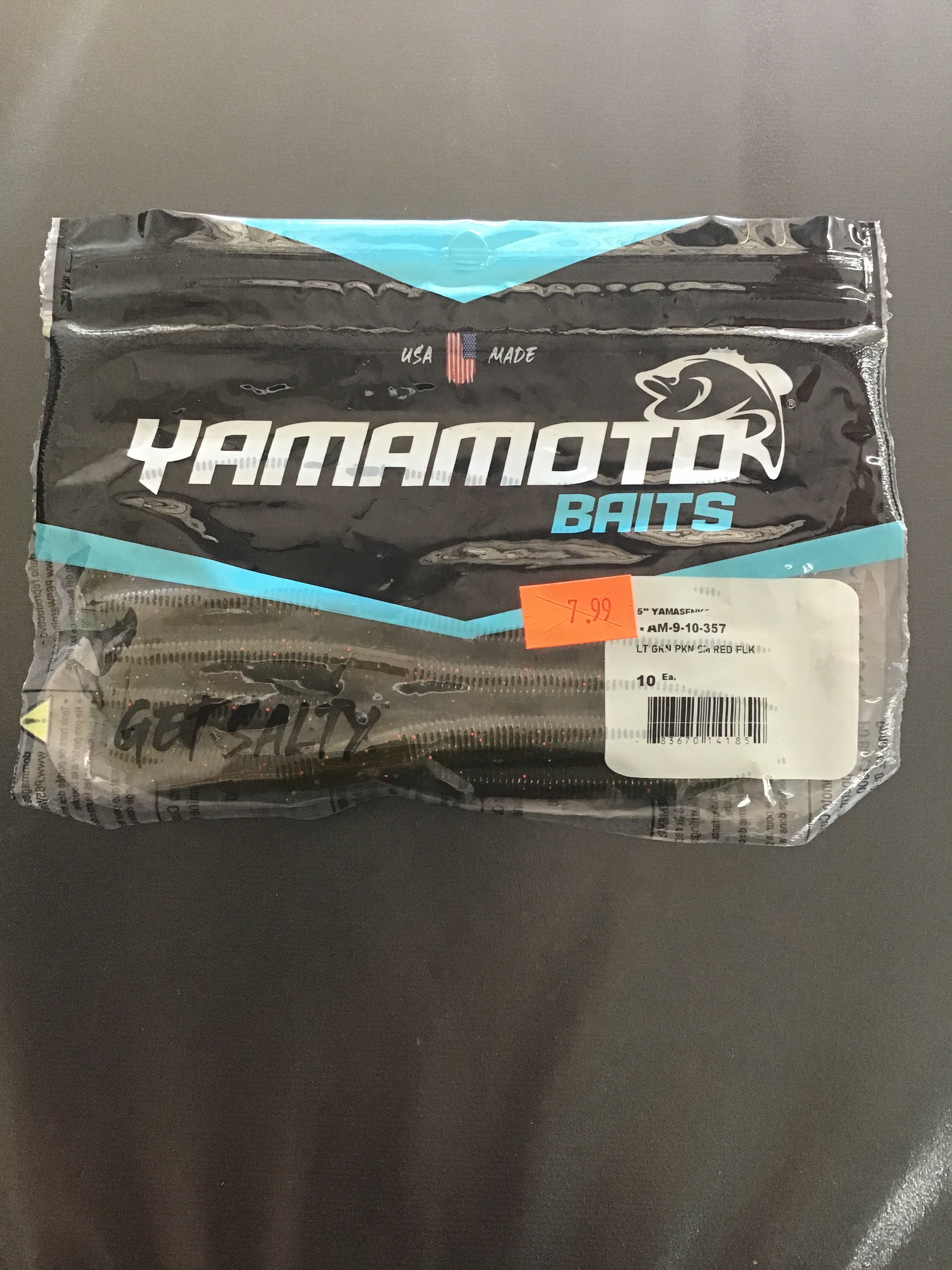 Yamamoto Senko 5”_ Green Pumpkin Large Red Flake