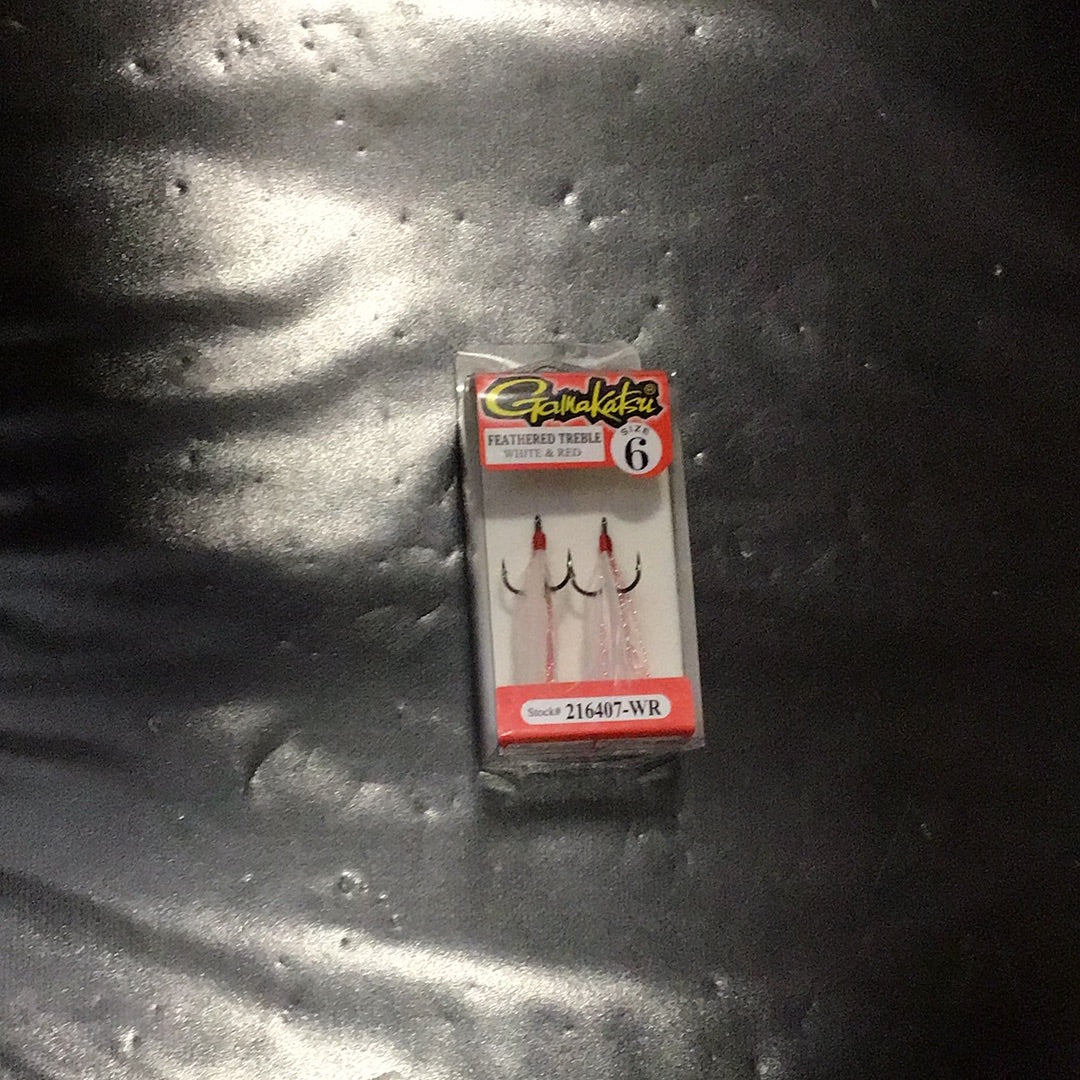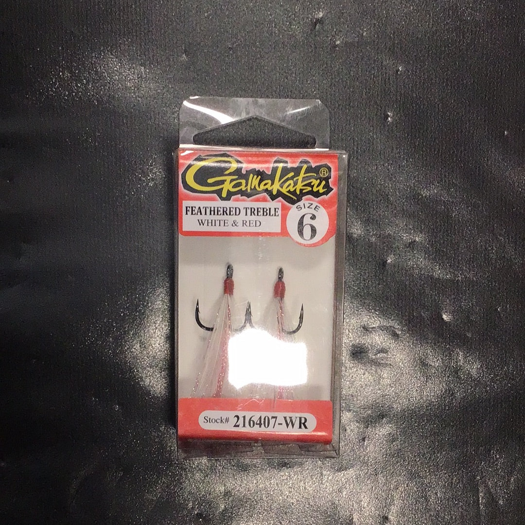 Feathered Treble Hook_White & Red Size 6