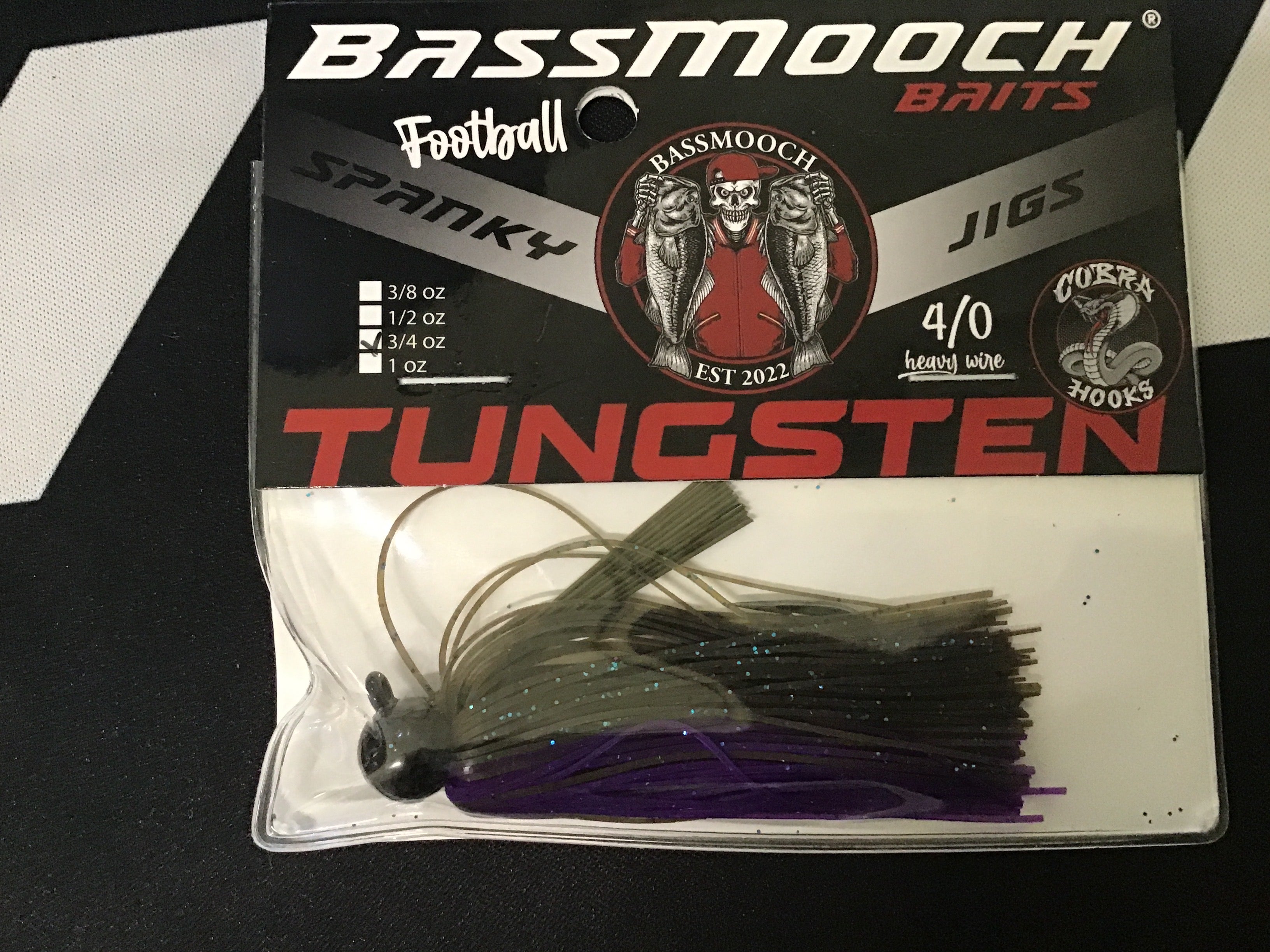 Bass mooch spanky tungsten football jig 3/4oz 4/0 green pumpkin candy